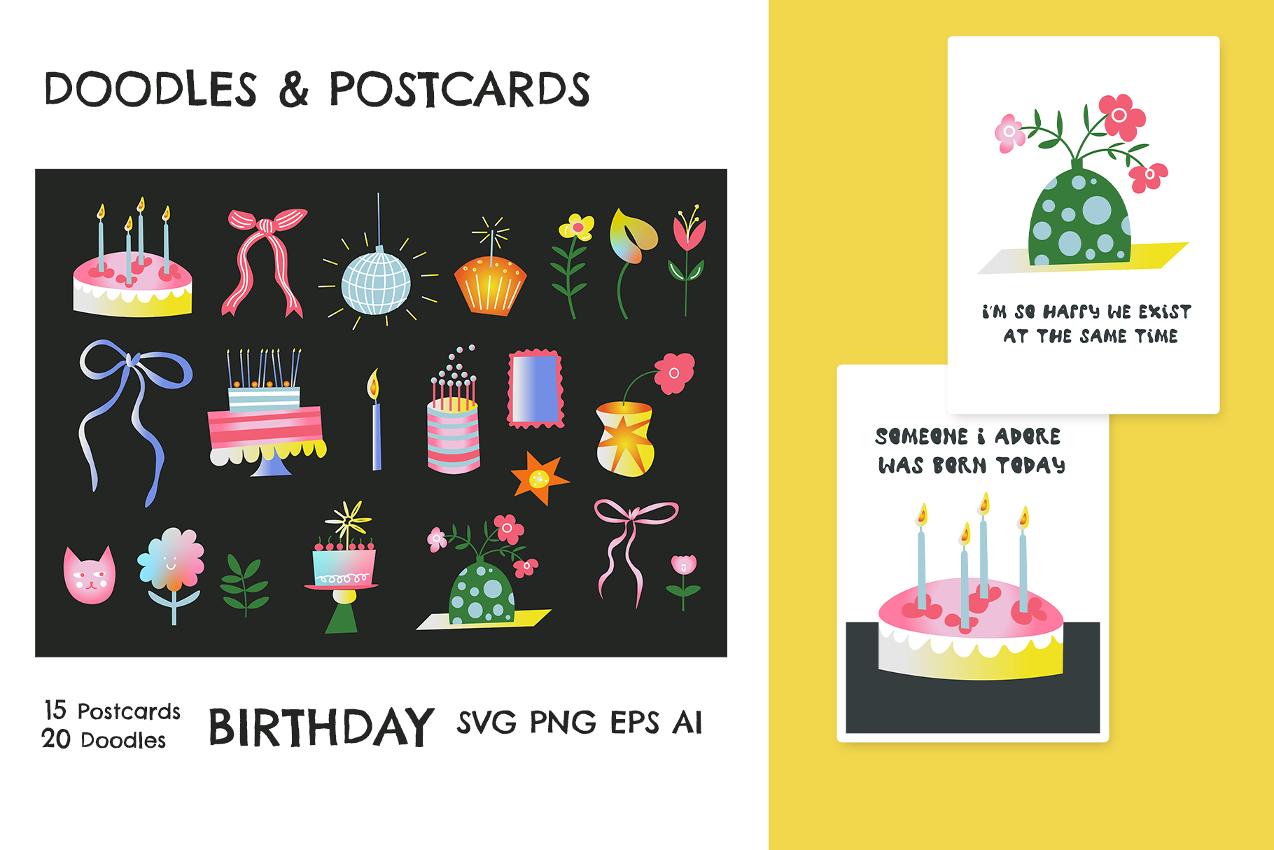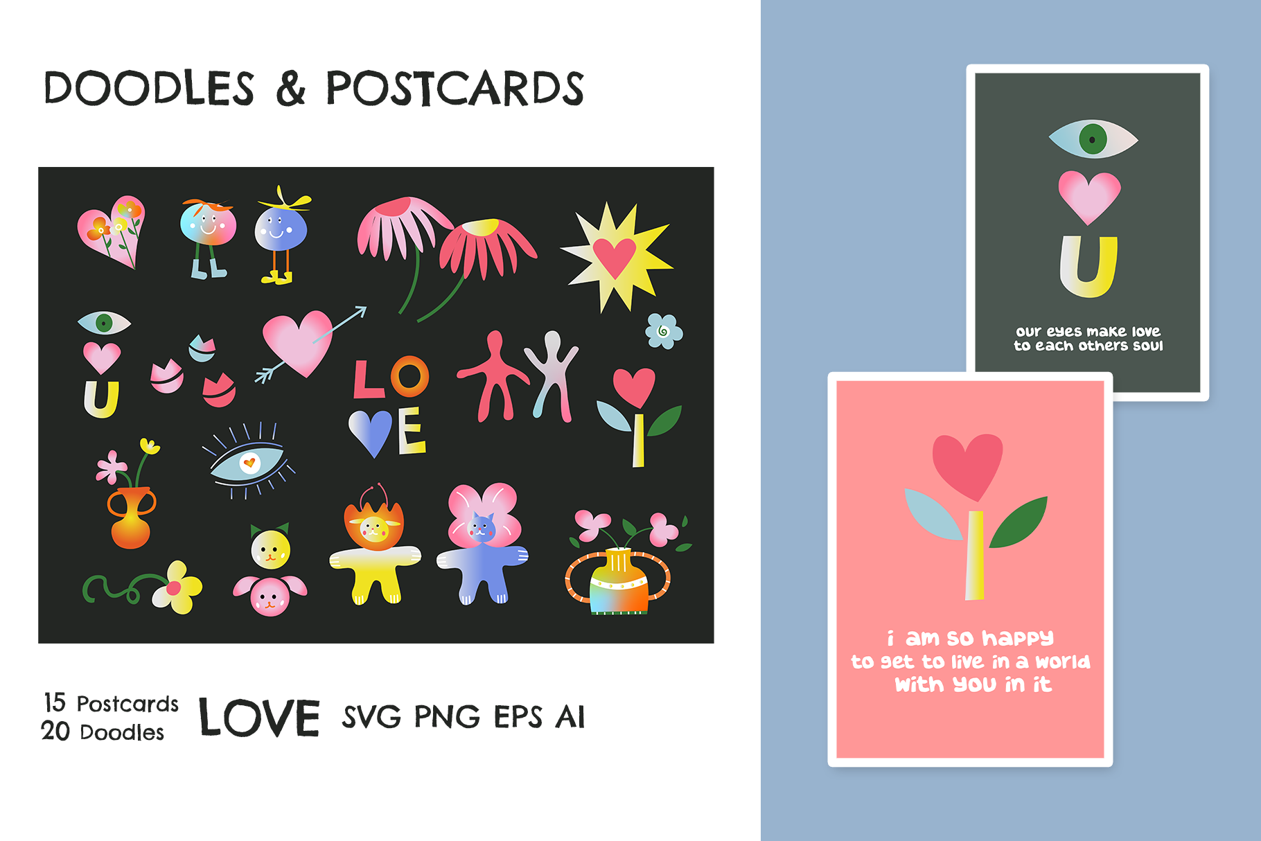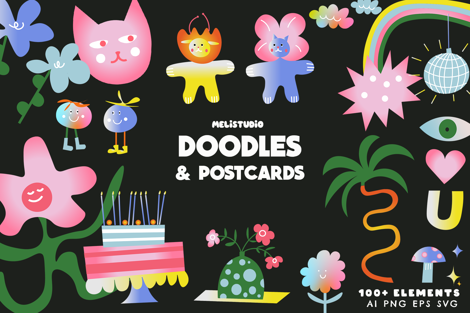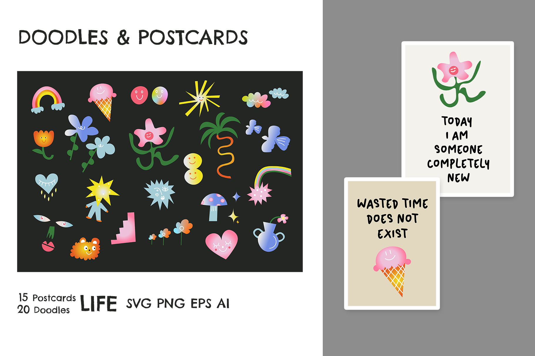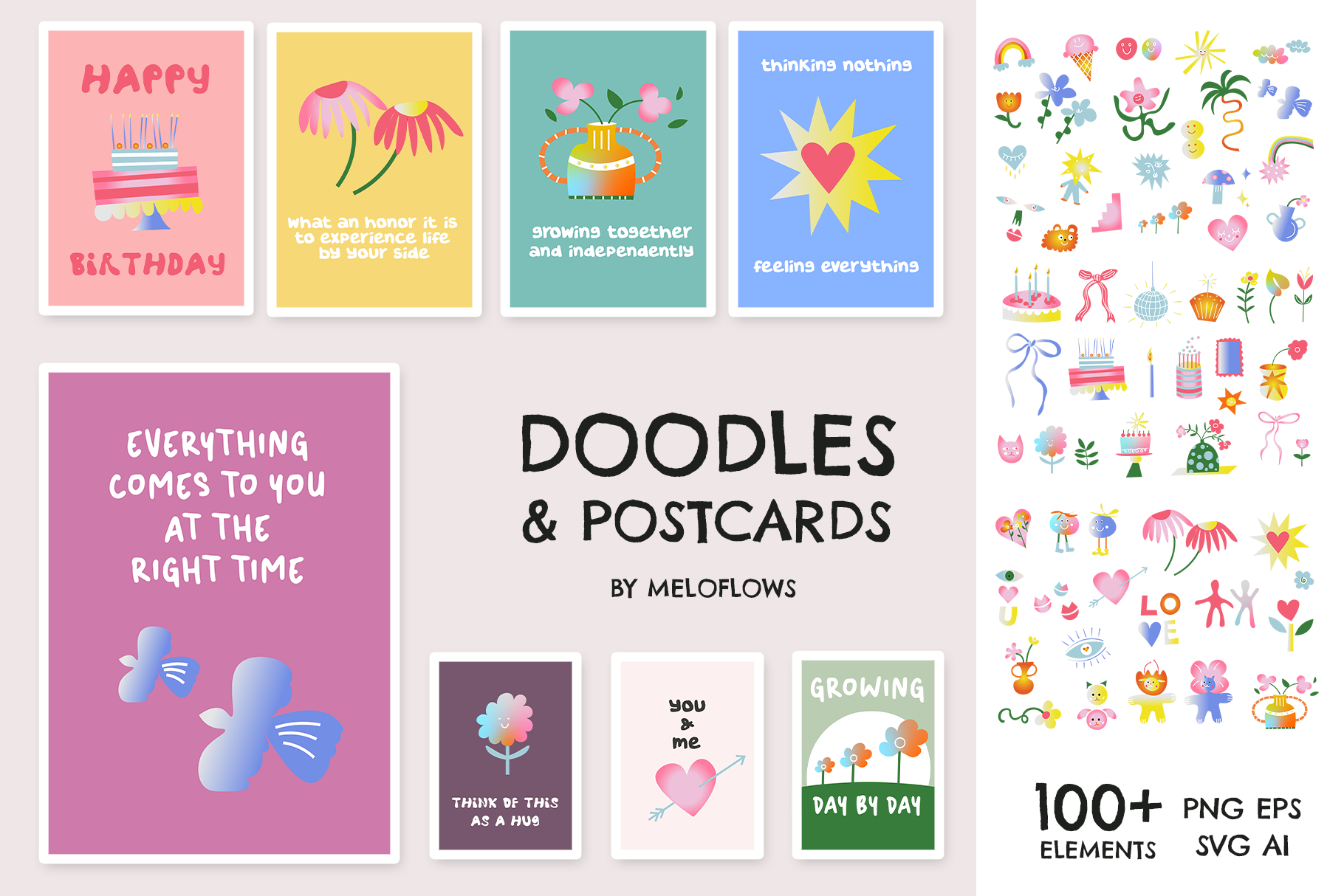 Doodles & Postcards Collection includes 100+ pre-made elements.