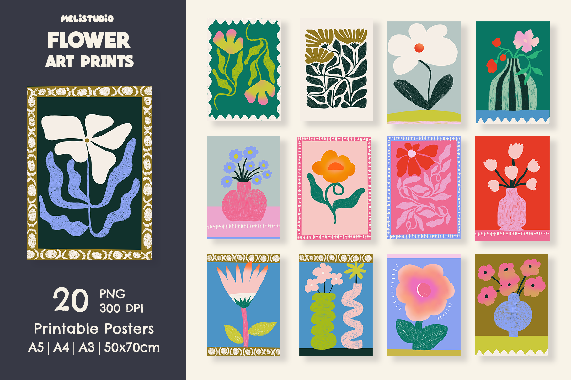 Flower Original Artwork Collection includes 20 pre-made posters.