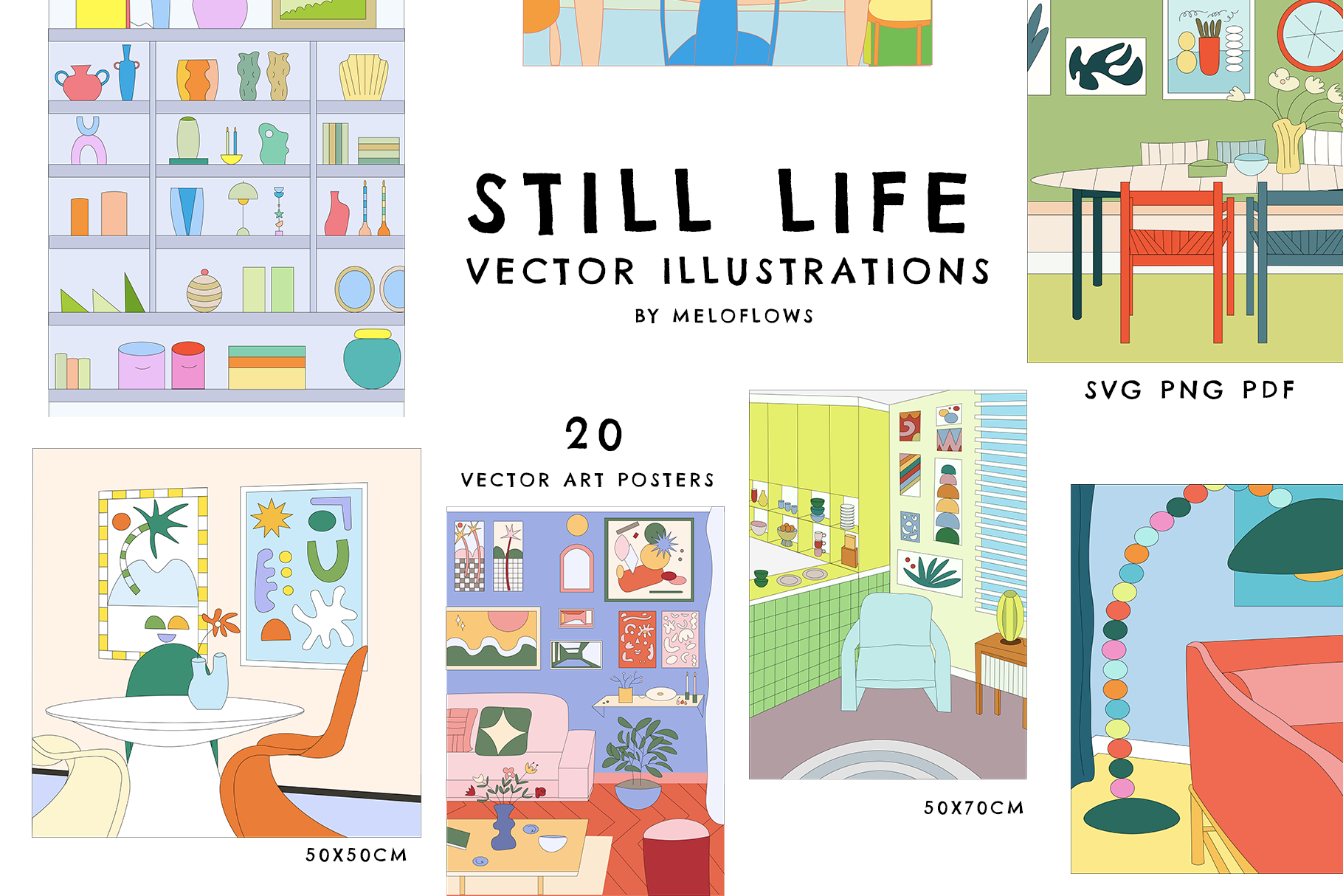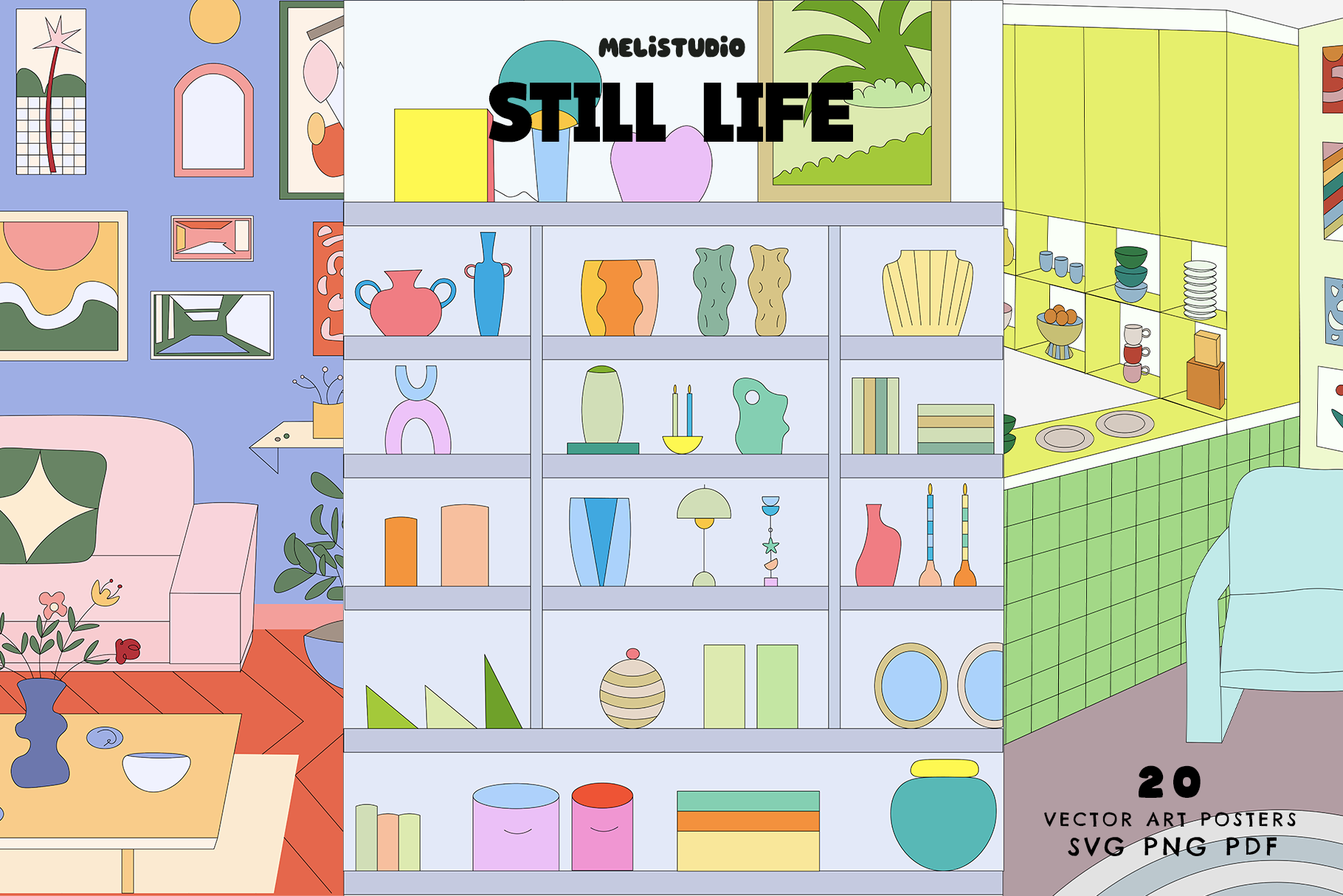 Still Life Vector Collection includes 20 interior design illustrations.